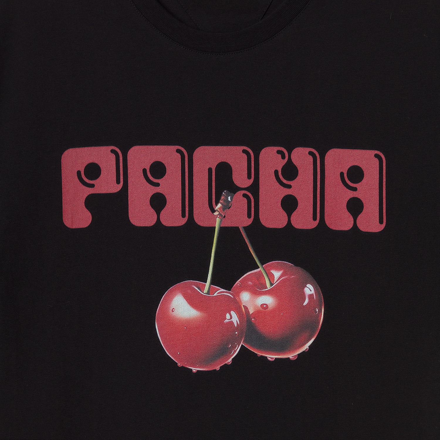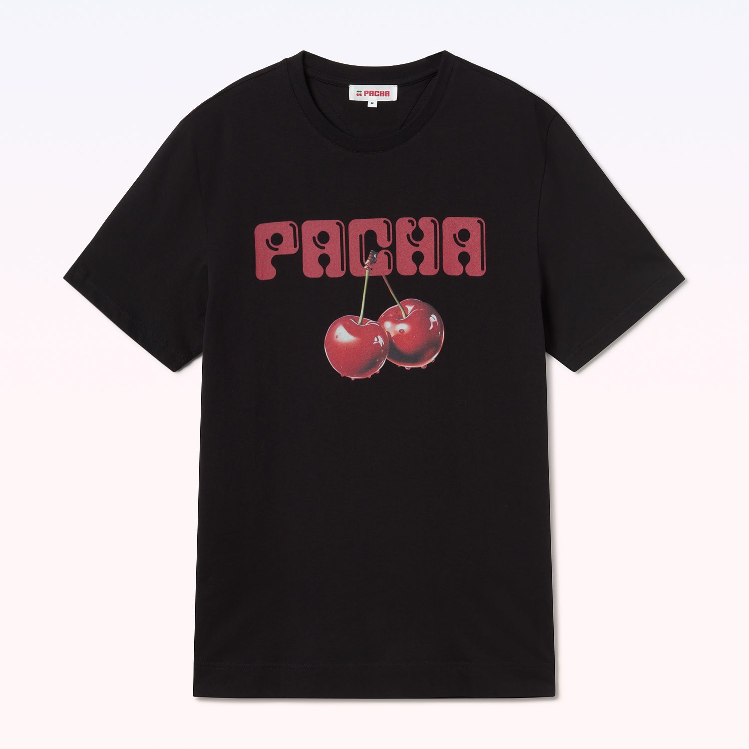 La Camiseta Real Cherry Club rinde homenaje al icónico logo Pacha con un twist contemporáneo: dos cerezas hiperrealistas que se roban la mirada, sobre una base negra que nunca falla.